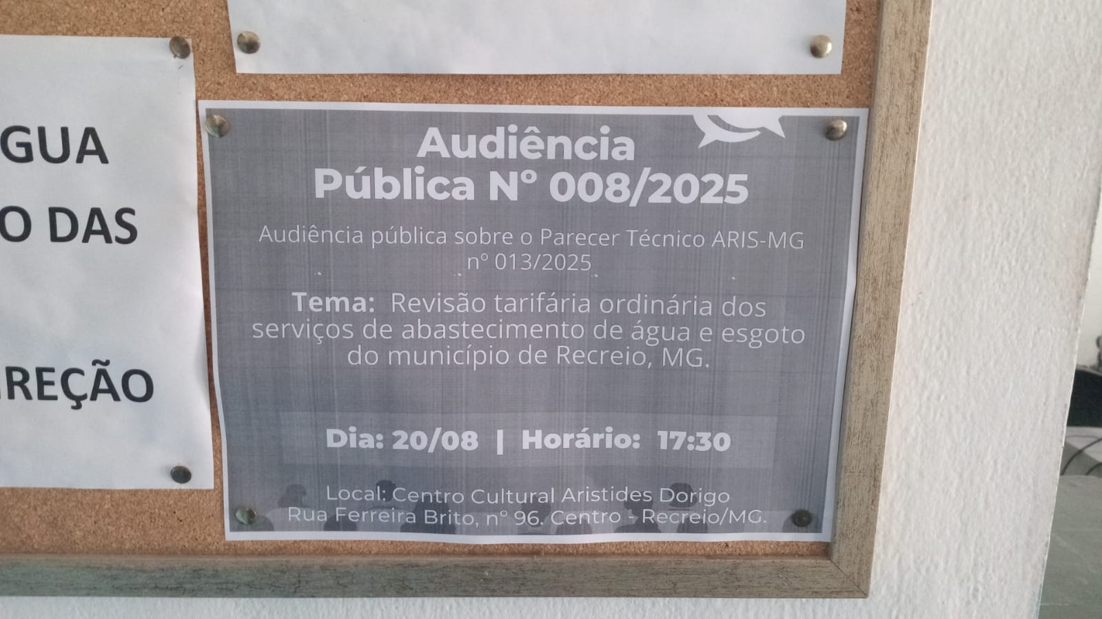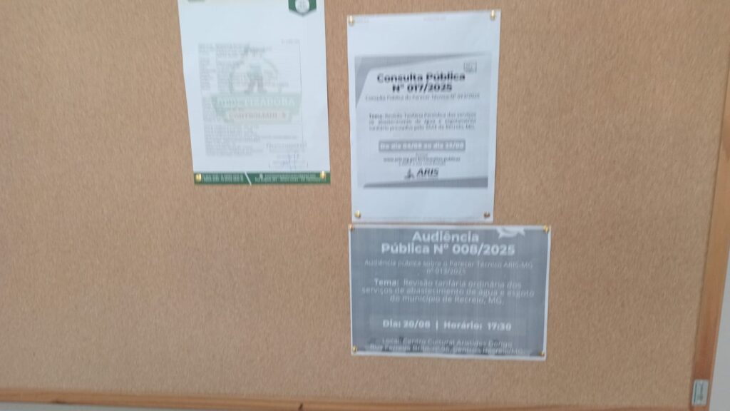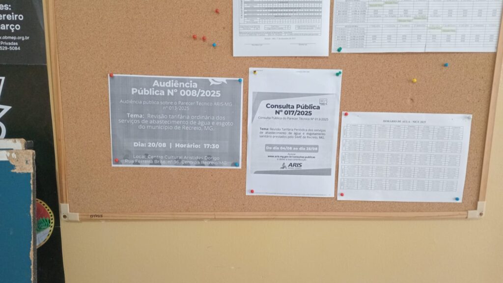 Divulgação da Consulta e da Audiência sobre Revisão Tarifária Mural Saae Centro cultural Prefeitura Municipal Esc. Nice Damasceno de Almeida João Damasceno Ferreira Mural da Saae